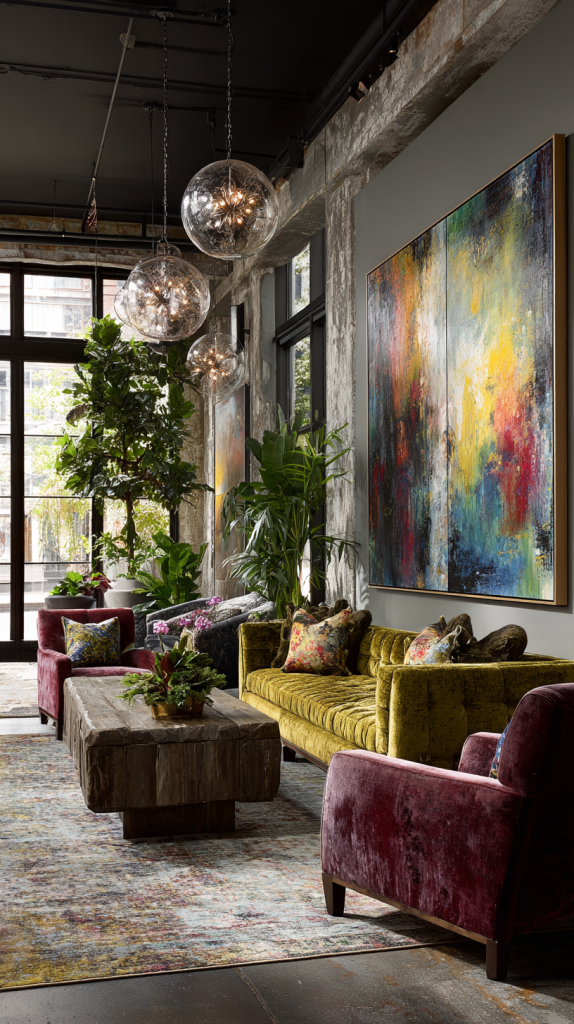 Art and accessories are key in an Industrial Artistic Loft. Choose statement wall art, vintage decor, and eclectic items to add personality.