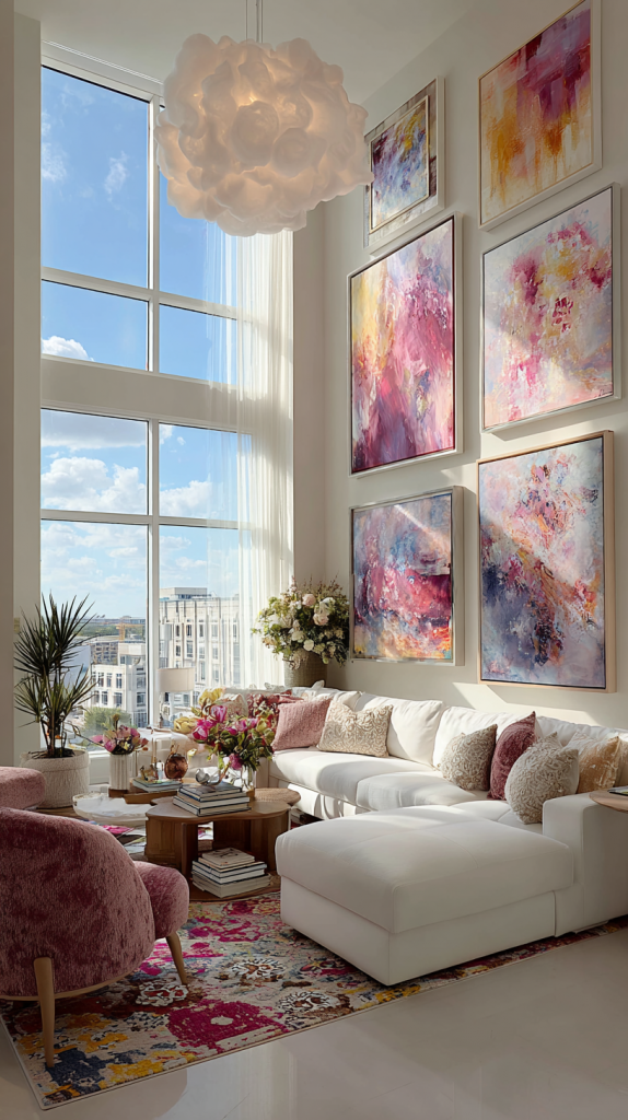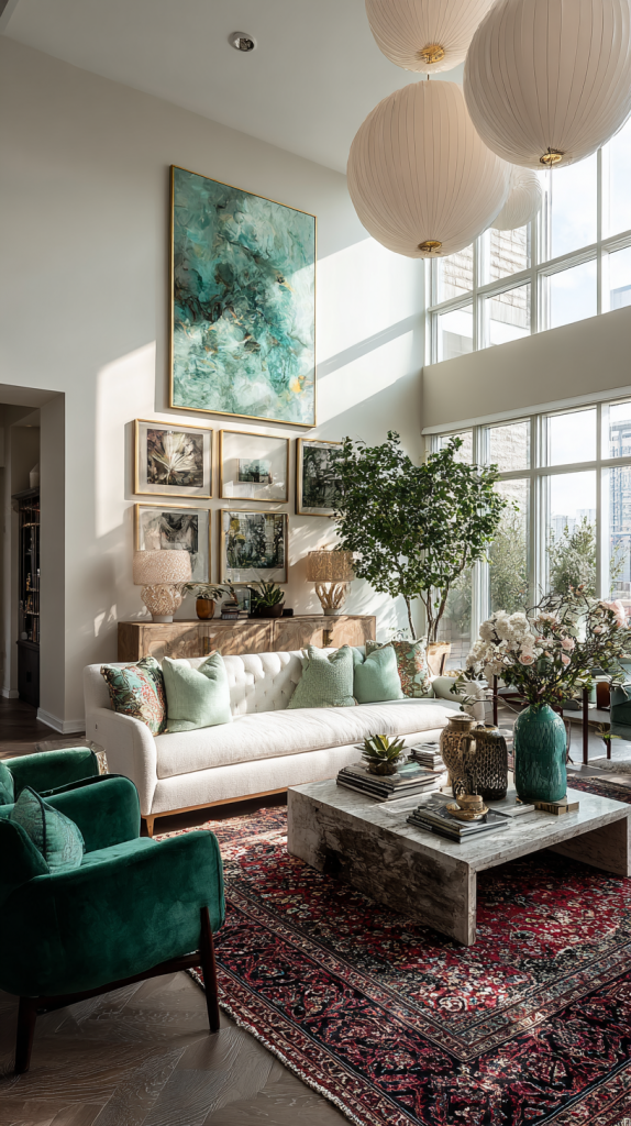 Statement art, bold rugs, and unique decorative items add contrast. This prevents the space from feeling too soft or bland.
